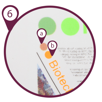 Porównanie kolorów osiągniętych metodą druku CMYK (a) oraz według Pantone (b):